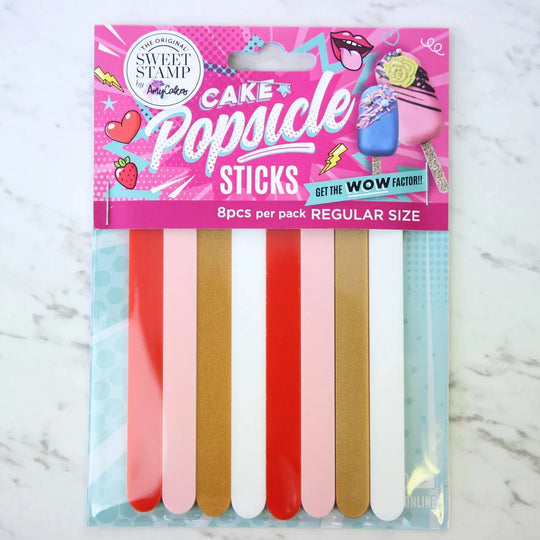 De Sweet Stamp Lolly/IJsstokjes Pastel Herbruikbaar Set/8. Deze set bestaat uit diverse vrolijke pastelkleuren. De stokjes kun je heel goed gebruiken voor het maken van cakesicles, cakepops en ijsjes. Haal voor gebruik de beschermfolie van...Reguliere prijs €5,19 -