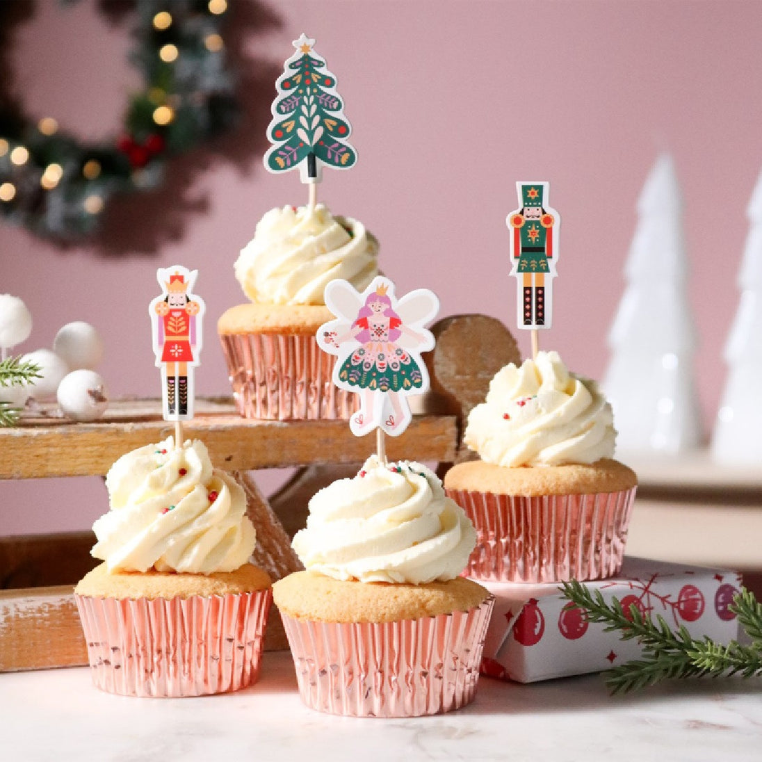 Geef uw feestelijk baksels of andere lekkernijen een betoverende, traditionele uitstraling met de PME Notenkraker Taartprikkers. Ook leuk met een Sprankelende Sprinkle Mix. De set bevat 24 toppers in 4 verschillende ontwerpen.