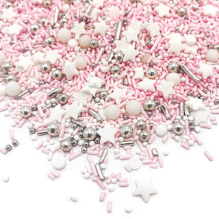 Heb je er ooit van gedroomd om wakker te worden als prinses in een groot kasteel in een ver land? Deze veganistische Sprinkle mix brengt je daar. Deze mix bevat een combinatie van glanzende sprinkles, kleine pareltjes en sterretjes die een sprookjesachtig, prinsessen-thema uitstralen. Het resultaat is een vrolijk en sprankelende taart, cupcake of popsicle die een magische en feestelijke uitstraling geeft. Ideaal voor kinderfeestjes en speciale gelegenheden.