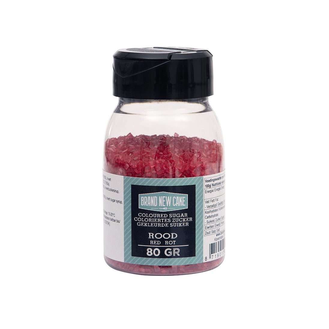 Brand New Cake Gekleurde Suiker Rood 80g Maak de mooiste feestelijke decoraties met behulp van deze Brand New Cake Gekleurde Suiker Rood. De suiker heeft niet alleen een prachtige rode kleur, maar ook is ook nog eens heerlijk zoet van smaak. je kunt de suiker gebruiken om je koekjes of baksels een suikerrandje te geven, maar wat dacht je van een suikerrandje aan je cocktail glas perfect voor de feestdagen. Laat die heerlijke zoete, rode creaties maar uit je keuken verschijnen!